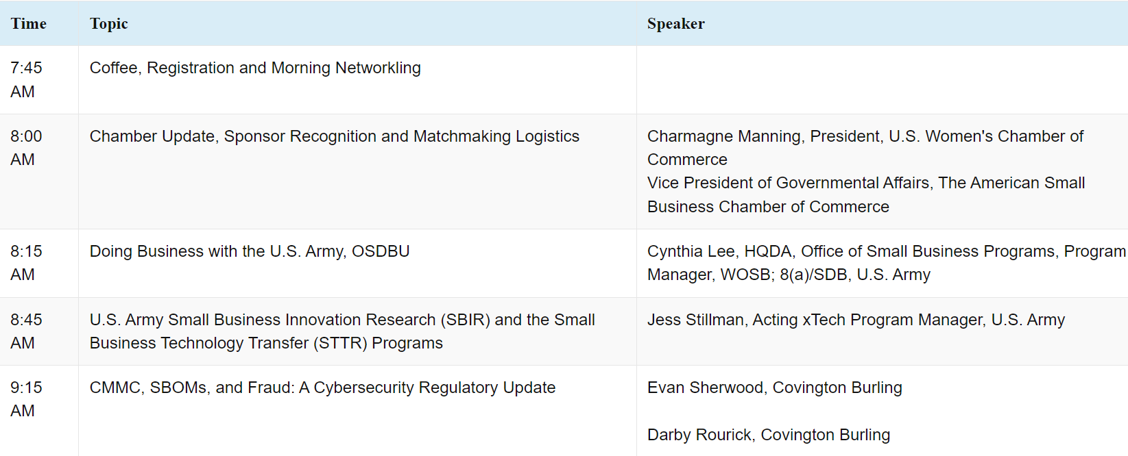 Access to federal agencies and prime contractors and the opportunity to meet one-on-one with Agency and Prime Acquisition Representatives (scroll to the bottom of the page to see the list of agencies and prime contractors who have confirmed and which will attend live vs. virtual)